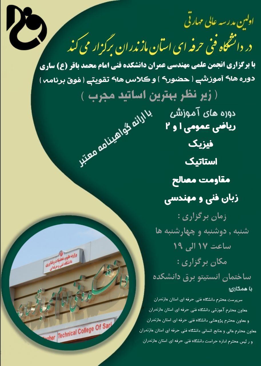به دبیر انجمن علمی عمران دانشکده فنی حرفه ای امام محمد باقر (ع) ساری مراجعه نماین