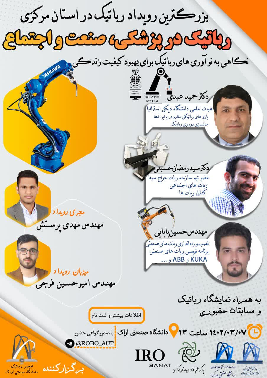 میزبان بزرگترین رویداد رباتیک در استان مرکزی "رباتیک در پزشکی، صنعت و اجتماع"