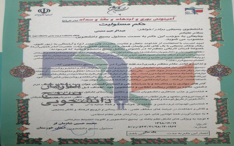 مسئول بسیج دانشجویی دانشکده تربیت بدنی و علوم ورزشی دانشگاه شهید چمران اهواز