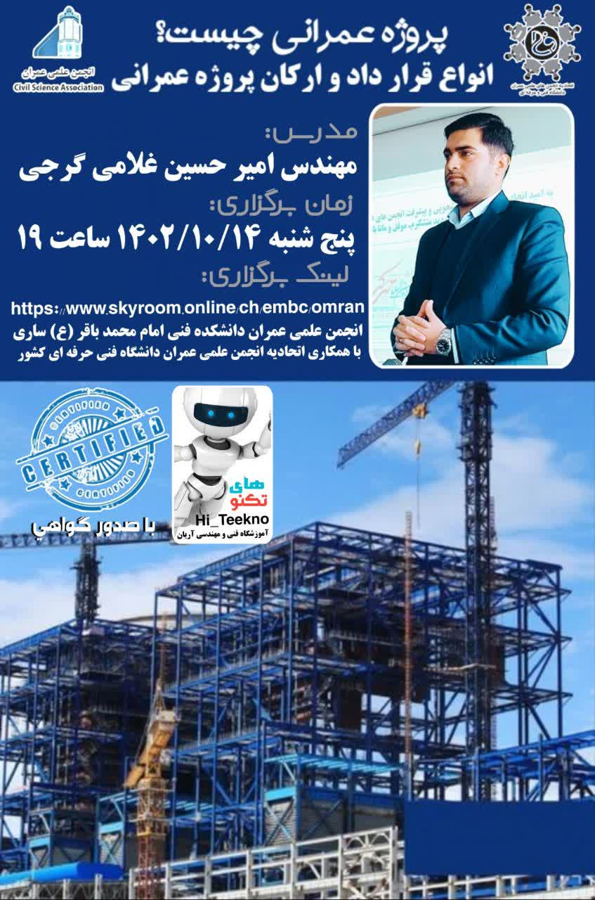 انجمن علمی عمران دانشکده فنی امام محمد باقر (ع) ساری با همکاری اتحادیه انجمن علمی عمران دانشگاه فنی حرفه ای کشور برگزار می نماید